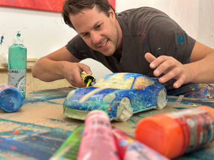 From casual conversations to over 200 hours of dedicated work, this Art Car embodies the meeting of contemporary art and exceptional automotive craftsmanship. It is a testament to passion, creativity, and collaboration—ready to astonish every onlooker.